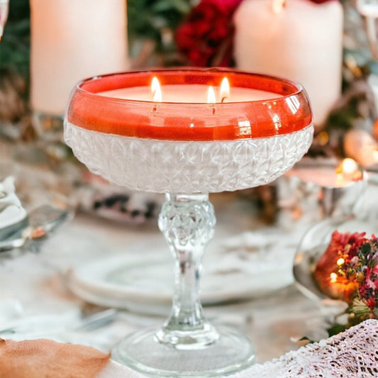 Cranberry Marmalade Candle in Vintage Amberina Glass Compote