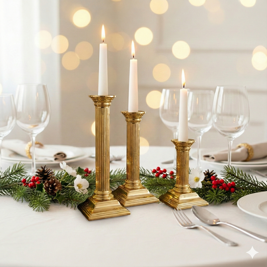 Set of 3 Baldwin Brass Candle Holders – Vintage Holiday Table or Mantel Decor