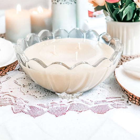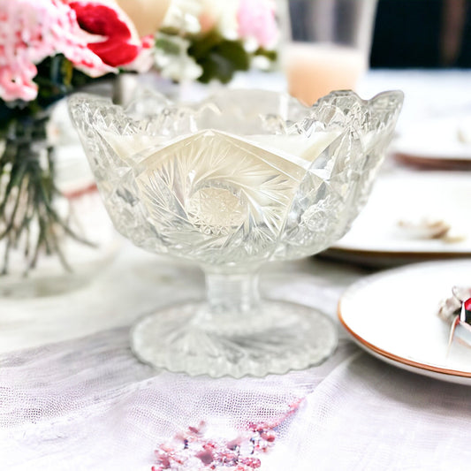 Moonflower Soy Candle in Vintage Mikasa Crystal Bowl | Elegant Gift