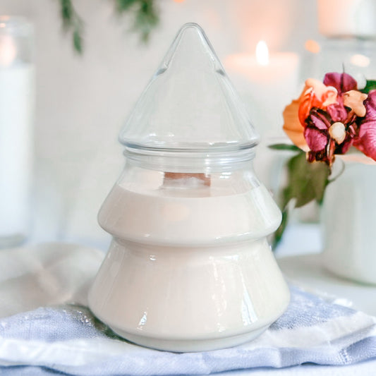 Soy Candle in Vintage Glass Christmas Tree Jar – Fraser Fir or Christmas Hearth