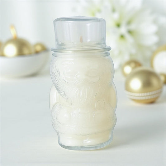 Soy Candle in Vintage Libbey Santa or Snowman Holiday Jar – Mid-Century Christmas Decor
