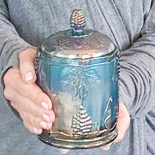 Customizable Vintage Candle in Carnival Glass Candy Jar