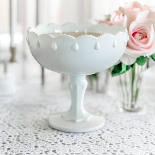 Vintage Sea Salt and Orchid Candle | Milk Glass Teardrop Compote