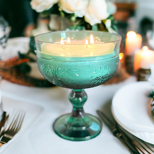 Vintage Moonflower Candle in Tulip-Shaped Glass Bowl