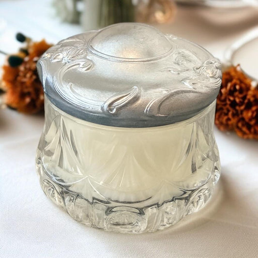 Soy Candle in Antique EAPG Puff Jar – Moonflower Scent