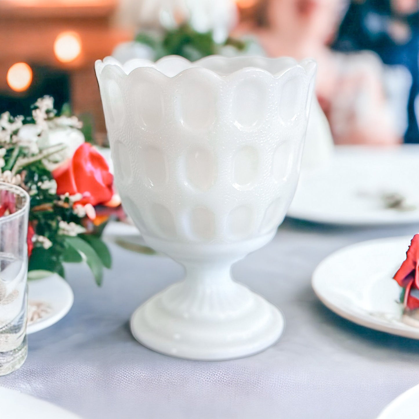 Vintage Milk Glass Pedestal Vase by E.O. Brody Co. #M4200 (Marked on bottom)