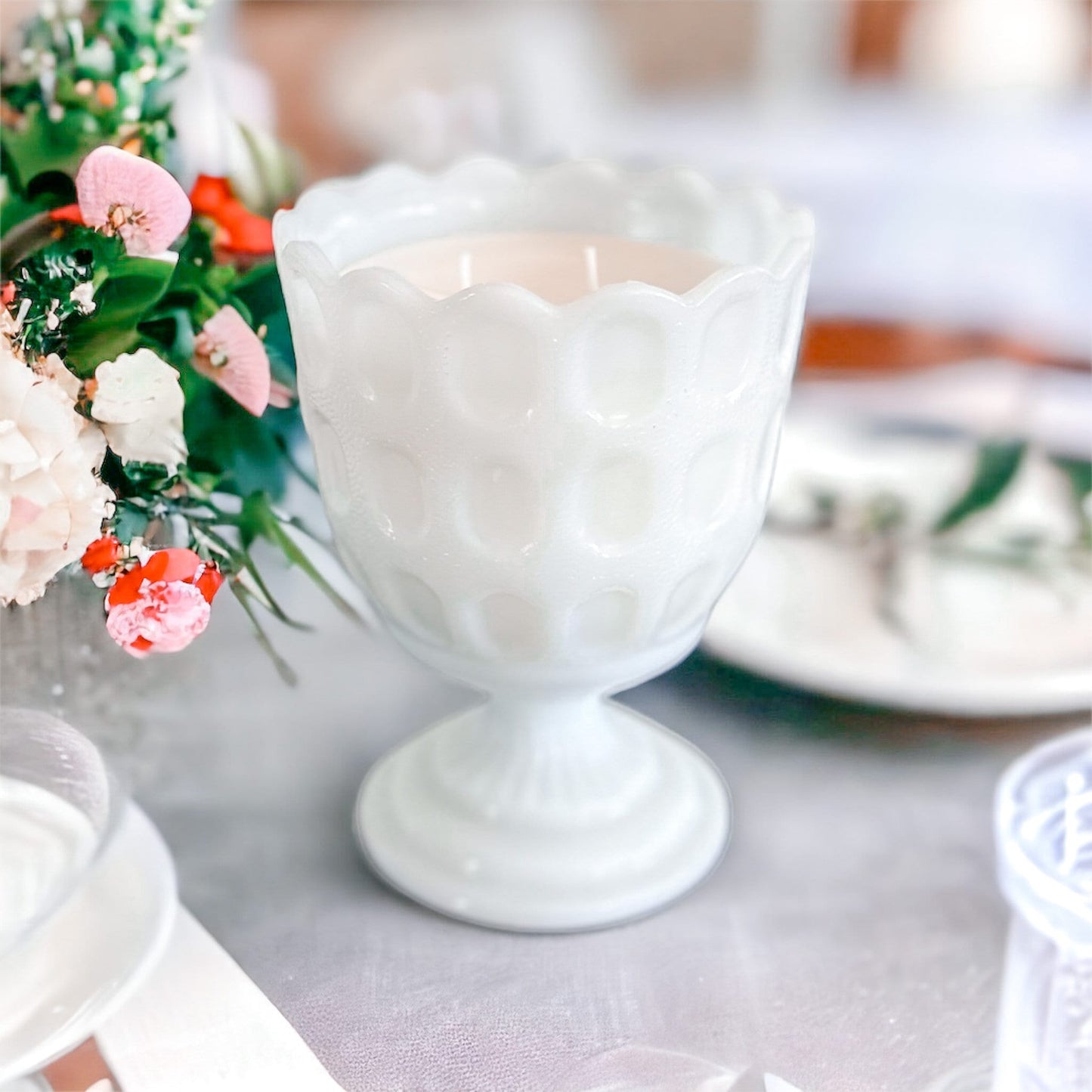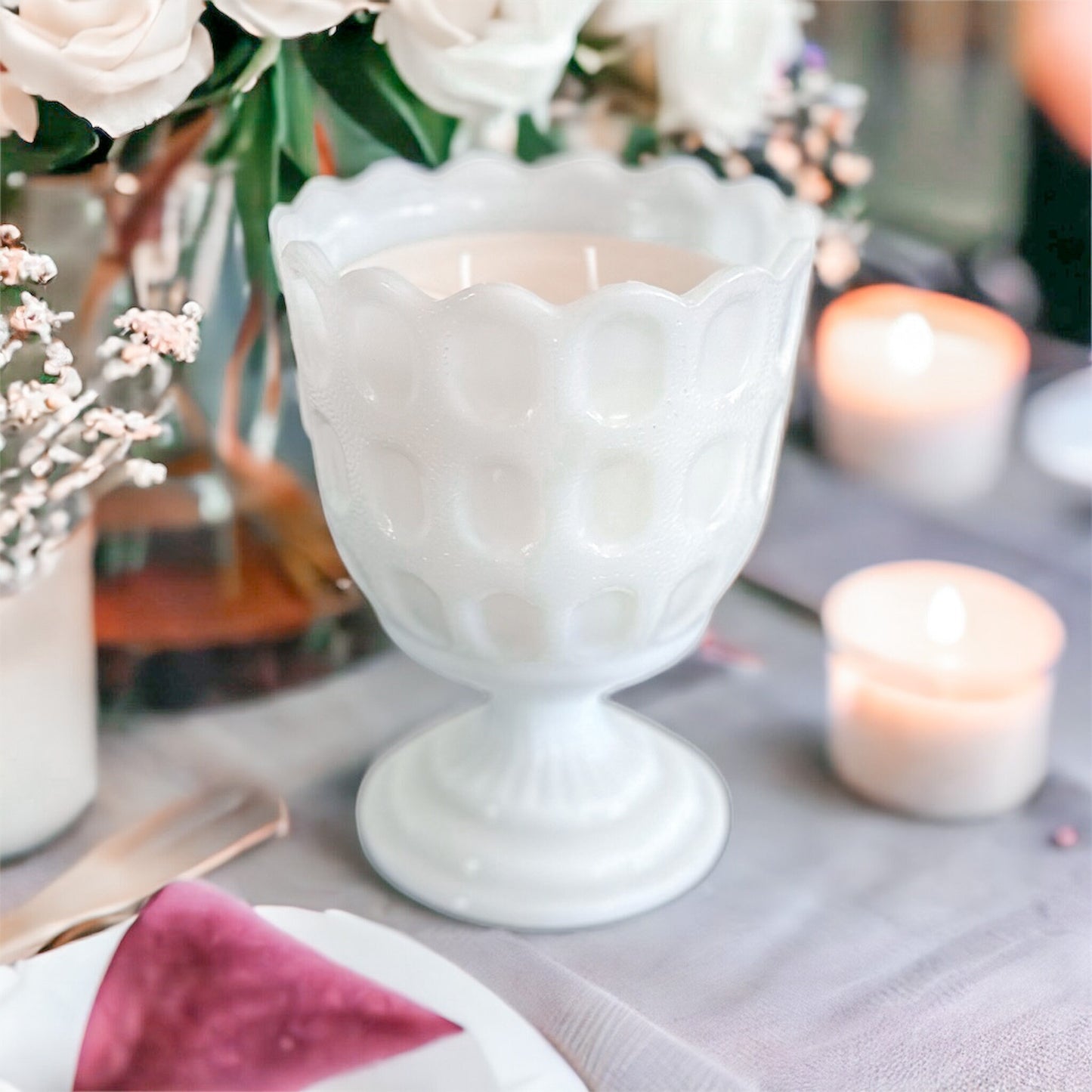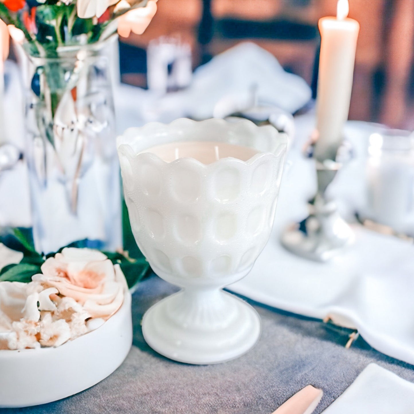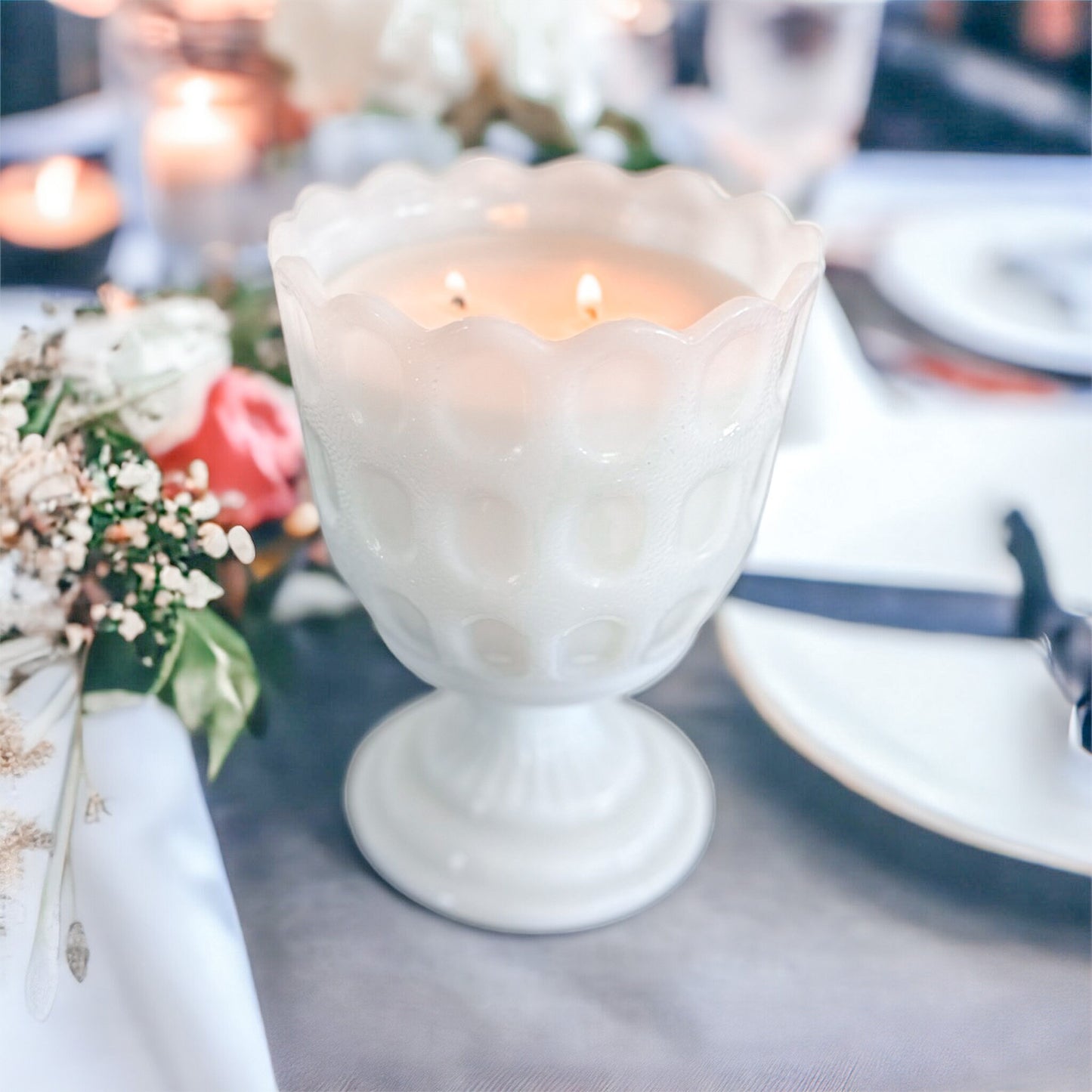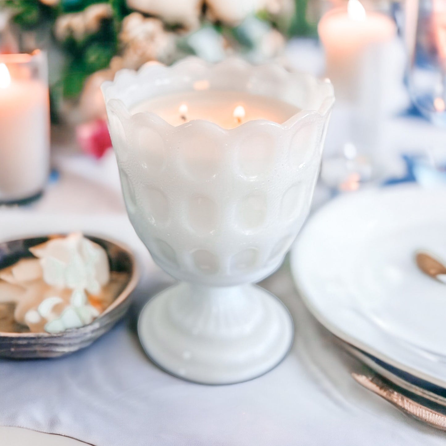 Embrace the holiday spirit with our Cypress & Bayberry soy wax candle, hand-poured into a vintage E.O. Brody Co. milk glass vase. This enchanting forest-inspired aroma adds a nostalgic touch to any space. Perfect for seasonal decor or as a unique gift.