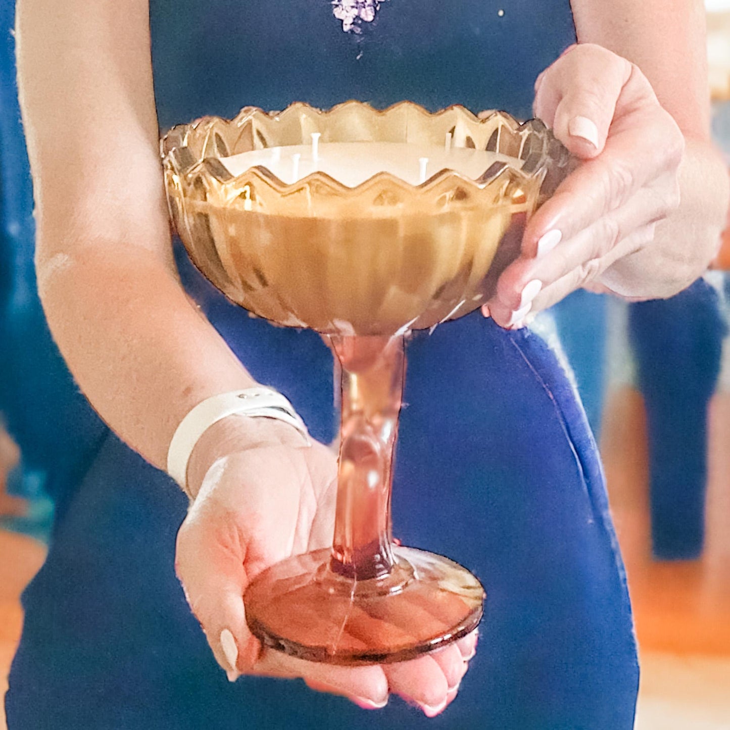 The charming vintage compote, with its gentle signs of wear, adds a touch of nostalgic beauty, enhancing its uniqueness and making it a memorable gift for your best friend. This hand-poured candle is not just a thoughtful present but also a chic piece of decor, perfect for celebrating your friendship.