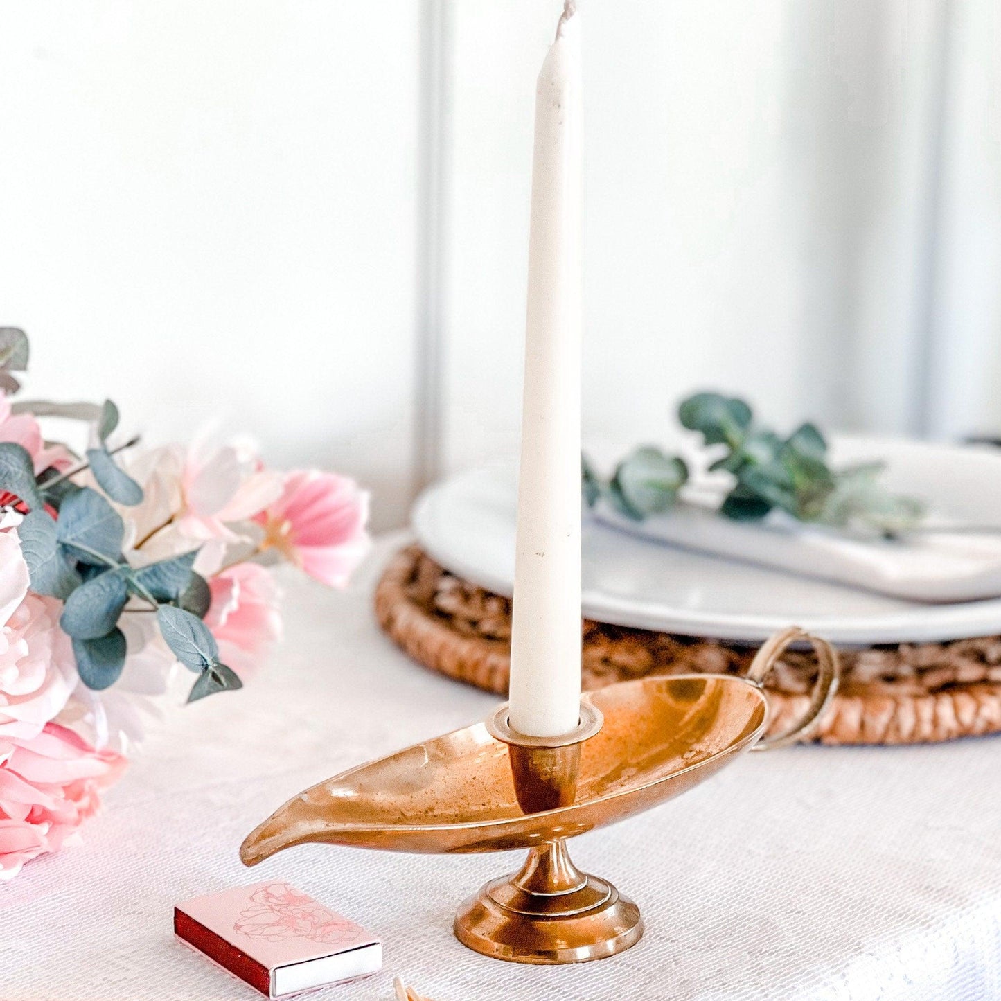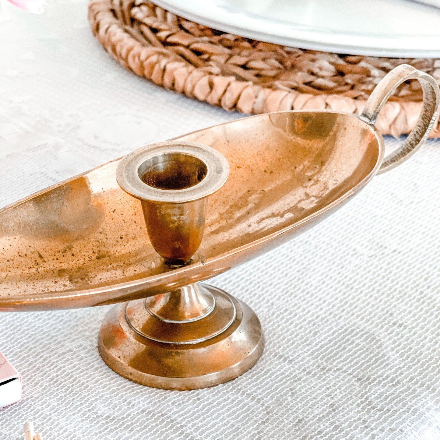As this is vintage, there is slight wear but this adds to the nostalgic charm and is ideal for the candle enthusiast who also loves vintage decor. It has a bit of tarnish and minor cosmetic wear on the brass but are overall in good condition.