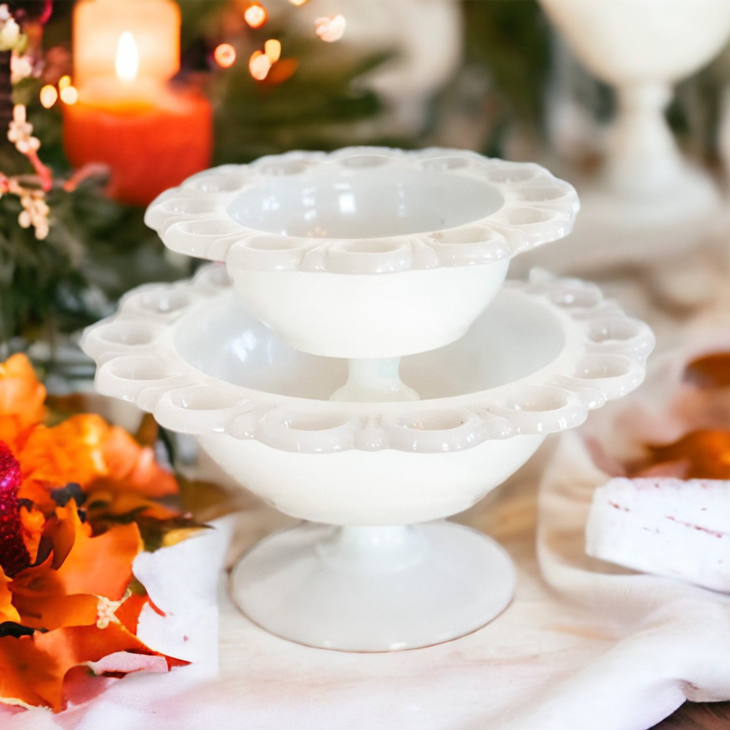 Vessels: Vintage Lace Edge Milk Glass by ANCHOR HOCKING (Aka "Old Colony", 1950's - 1960's) (Set of two)