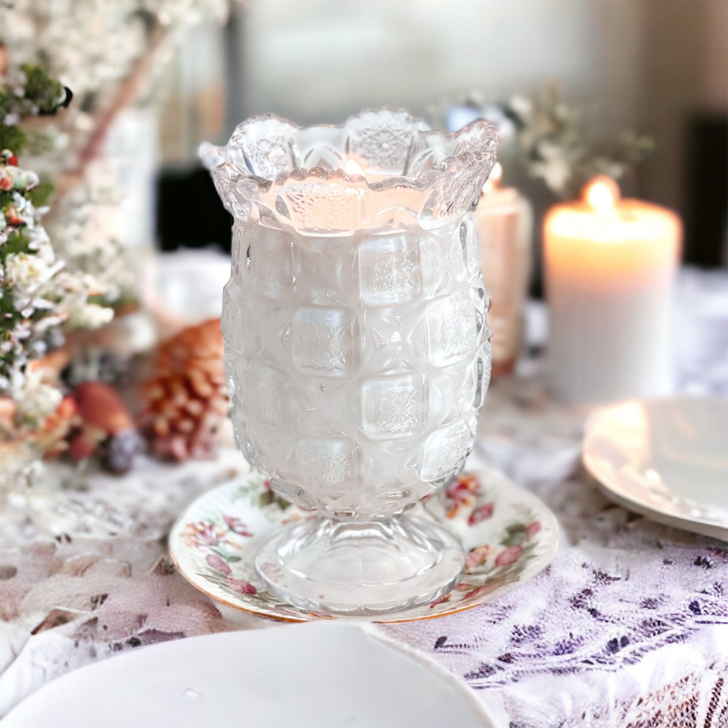 Vintage Old Quilt Milk Glass Vase Candle details: