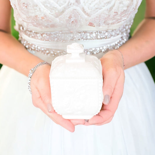 Lavender Vanilla Soy Candle in Vintage Milk Glass - Elegant Wedding Gift